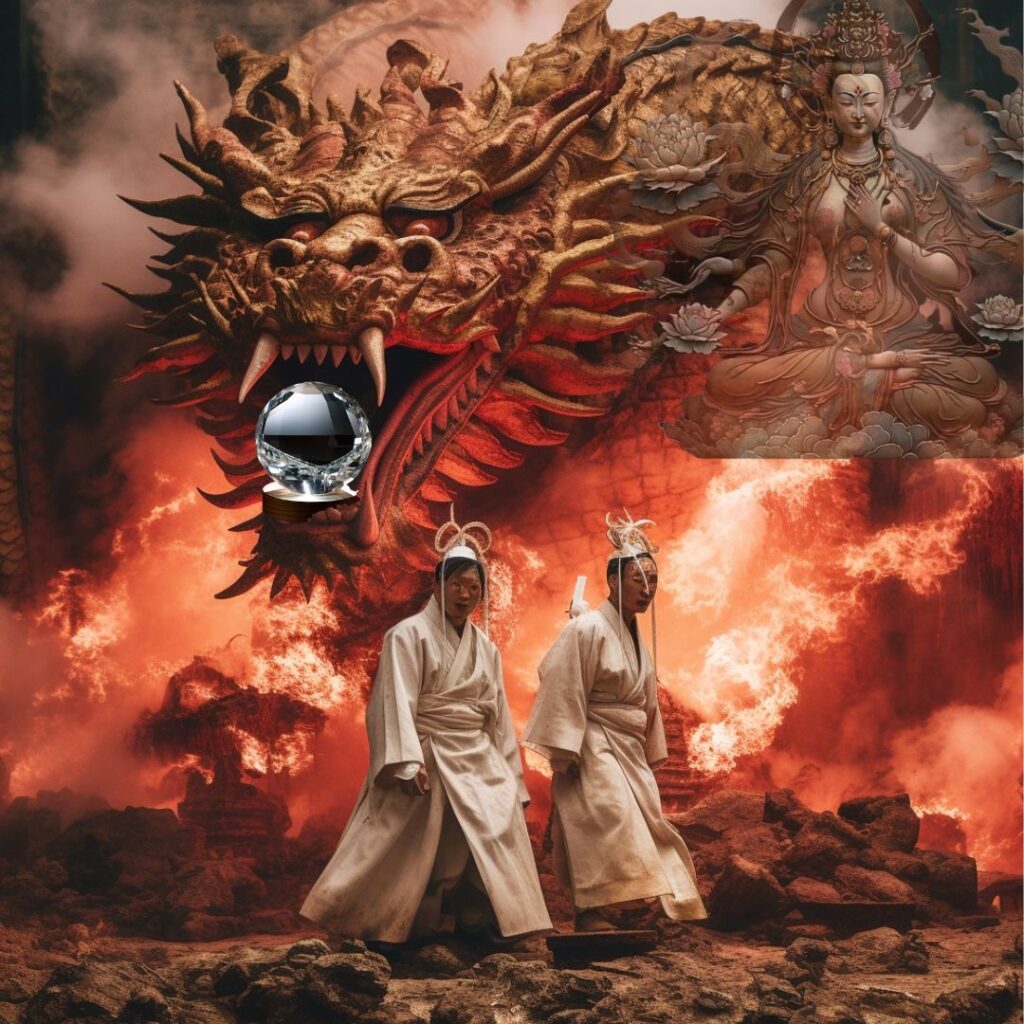 One of the most famous tales involving Ookuninushi is the story of his encounter with the eight-headed serpent Yamata no Orochi, known as the “Yamata no Orochi Totsuji” or “The Slaying of the Eight-Headed Serpent.” In this story, Ookuninushi demonstrates his divine nature and his ability to shape the destiny of the nation through his triumph over the fearsome serpent.