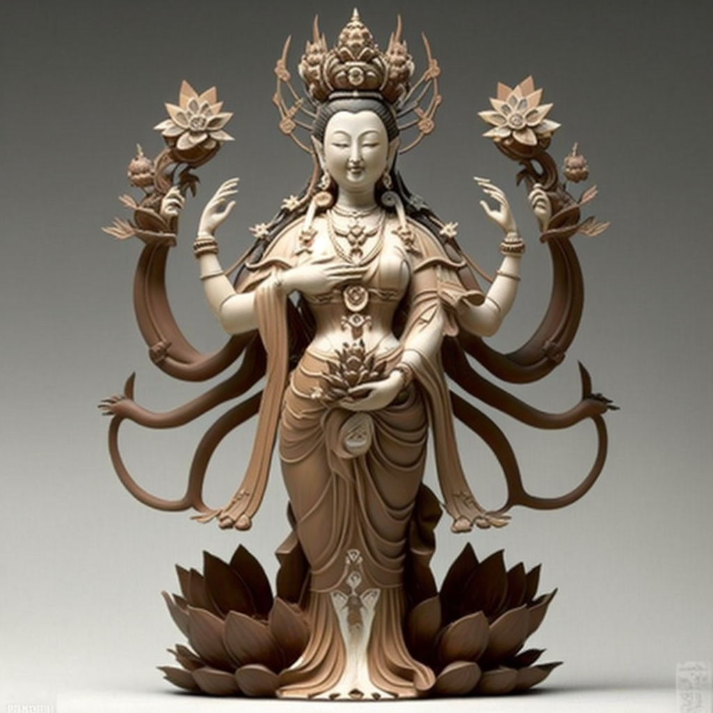 Juntei Kanzeon Bodhisattva is particularly worshiped in Chinese and Japanese Buddhism, and is enshrined in many temples and shrines. Her figure is usually depicted as a graceful woman holding a lotus flower, a jewel, and a bottle in her hands.