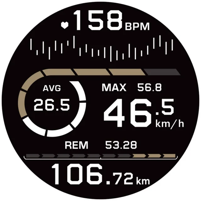 こちらは「ロードバイク」画面で、スピードをフィーチャーした配置になっています。