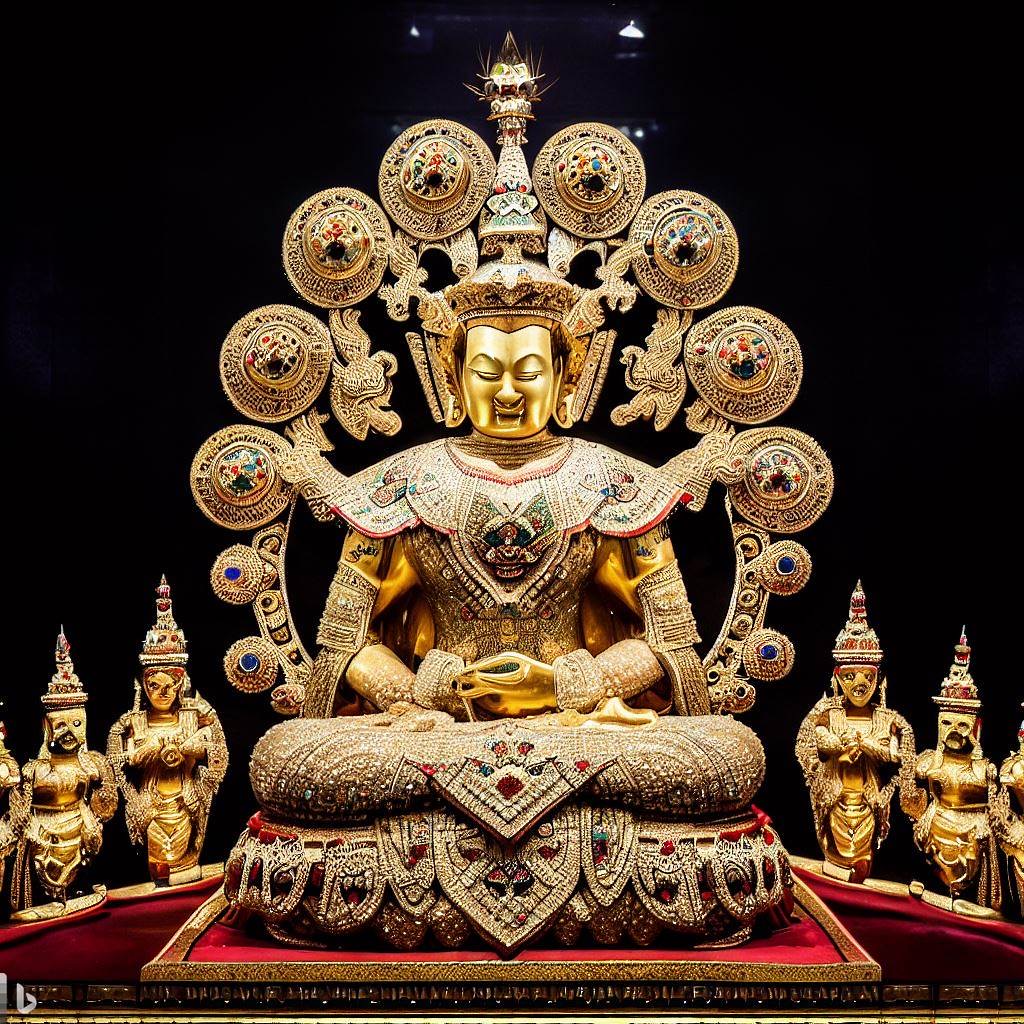 虚空蔵菩薩は計り知れない智慧と福徳を具え、衆生の諸願を成就させてくれる菩薩で、頭に寶冠、手に福徳の如意宝珠、智慧の宝剣を持つ。胎蔵界曼陀羅虚空蔵院の主尊。