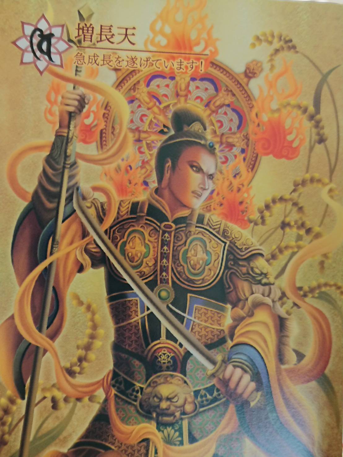 本来はインド神話に登場する雷神インドラ(帝釈天)の配下で、後に仏教に守護神として取り入れられた。仏の住む世界を支える須弥山の4方向を護る四天王の1人として南瑠璃埵(みなみるりた)に住み、南の方角、或いは古代インドの世界観で地球上にあるとされた4つの大陸のうち南贍部洲(なんせんぶしゅう)を守護するとされる。