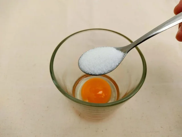 カップに卵黄、砂糖(お好みの量)を入れて、コーヒーを注いで混ぜるだけなのですが……。