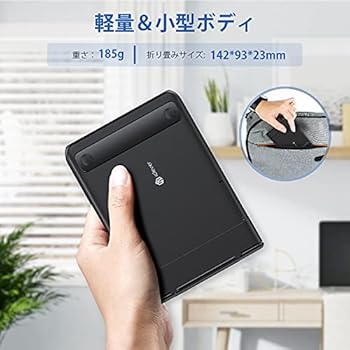 厚さ12mm(展開サイズ)で185g(キーボード本体のみ)と薄くて軽いので、ポケットやバッグに入れて簡単に持ち運べます。また、スタンド機能やマルチペアリング機能、ファンクション機能など、様々な機能が充実したBluetoothキーボードです。