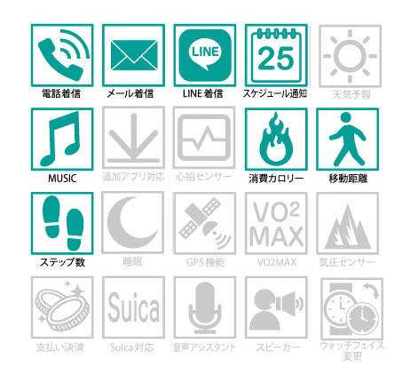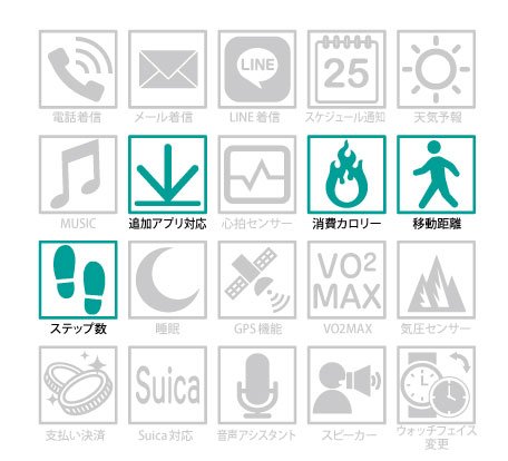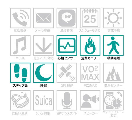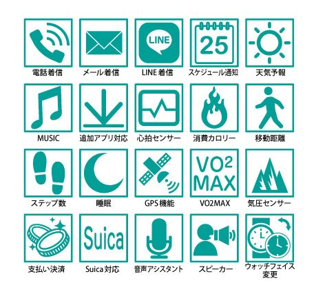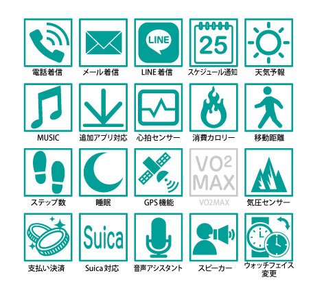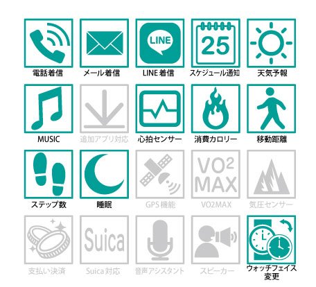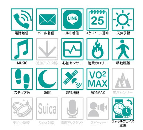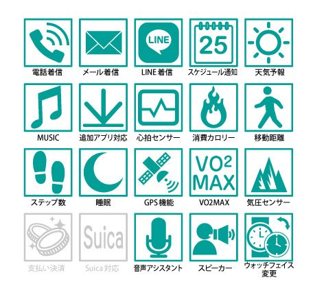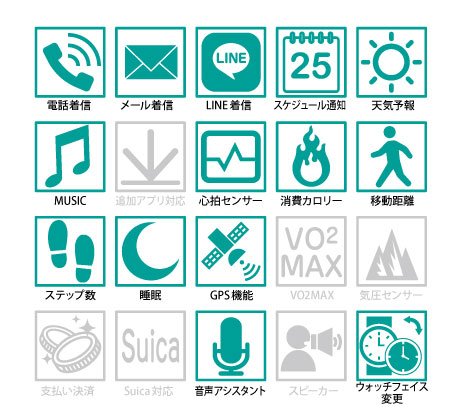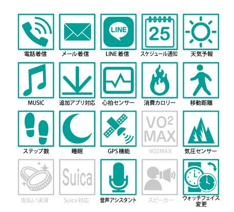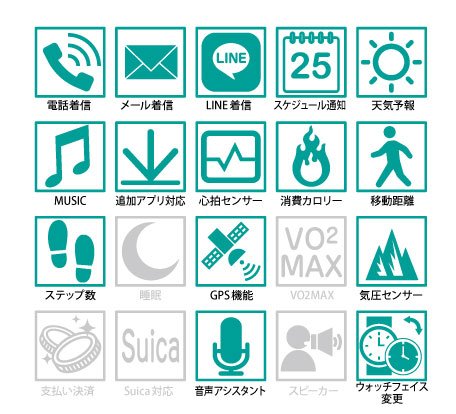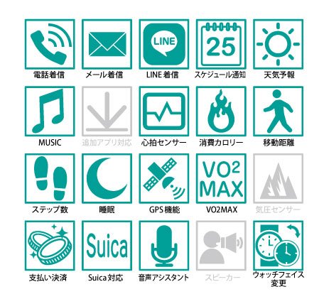 下記のスペック表の通り、スマートウォッチとしても非常に多機能なモデルです。