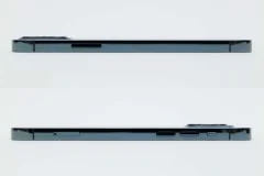 本体右側面(上)にはサイドボタン、本体左側面(下)にはサウンドオン/オフスイッチ、ボリュームボタン、SIMカードトレイを配置