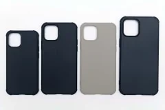 サイズ比較用にDeffの「TESiV Clean Case」を用意した。左からiPhone 12 mini用、iPhone 12/iPhone 12 Pro用×2、iPhone 12 Pro Max用だ。こうやって並べてみると、iPhone 12 miniの小ささが際立つ