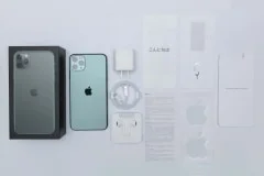 iPhone 11 Pro Maxのパッケージには、本体、18W USB-C電源アダプタ、USB-C – Lightningケーブル、EarPods with Lightning Connector、マニュアル類が同梱されていた