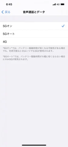 テスト前に、「モバイル通信→通信のオプション→音声通話とデータ」で「5Gオン」を選択し、5Gを優先的につかむように設定している
